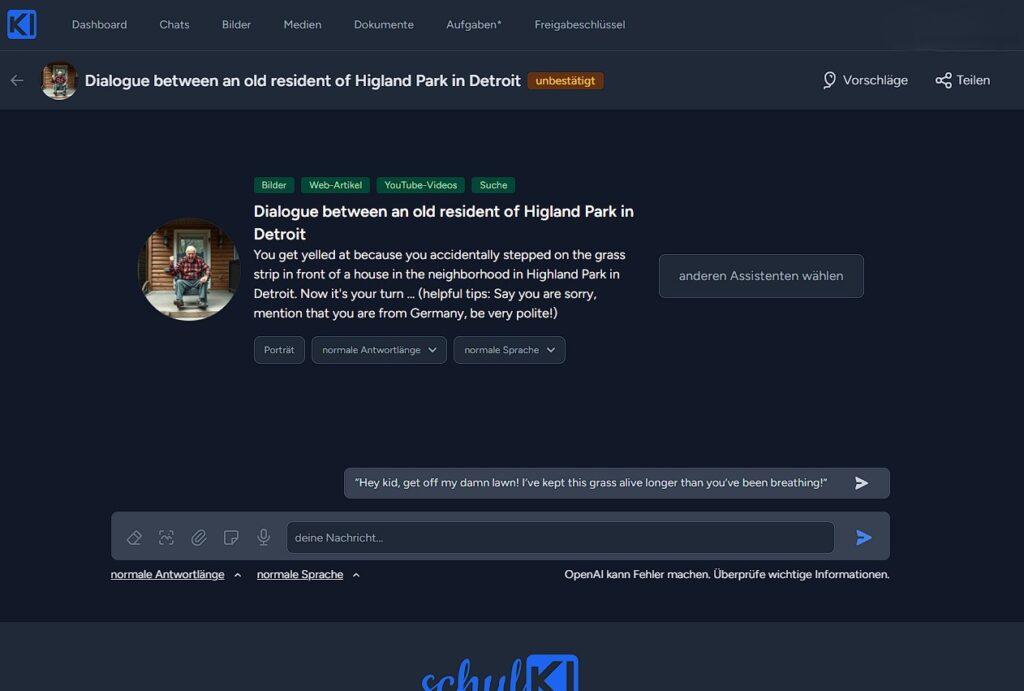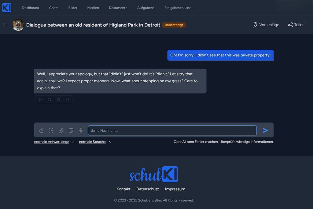 stellen Sie sich vor: Am Ende einer Unterrichtseinheit steht ein von Schülerinnen und Schülern selbst entwickelter KI-Bot, der so weit wie möglich einer realen oder fiktiven Person ähnelt, die zuvor Unterrichtsgegenstand war. Mit diesem Bot können die Schülerinnen und Schüler auf Deutsch oder in der Fremdsprache Dialoge führen – sei es in Experten-Interviews, Rollenspielen oder fachlichen Diskussionen. Genau diese Idee möchten wir Ihnen heute vorstellen: „Im Sprachenunterricht gemeinsam mit KI und Mega-Prompting einen realen oder fiktiven Charakter als Dialogpartner erstellen“.